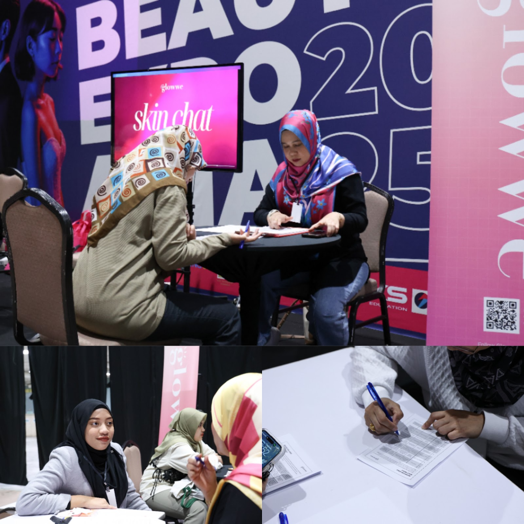 Hari kedua di Beauty Expo Asia 2025 berlangsung dengan penuh semangat tetapi lebih santai menerusi aktiviti “Check Your Skin” iaitu sesi konsultasi kulit secara bersemuka bersama pakar kecantikan Glowwe. Menerusi aktiviti ini, pengunjung berpeluang untuk mendapatkan nasihat penjagaan kulit berdasarkan jenis dan keadaan kulit masing-masing, mengenali produk dan rutin yang sesuai mengikut jenis kulit dan pengunjung juga berpeluang untuk bertanyakan apa-apa soalan berkaitan penjagaan kulit.