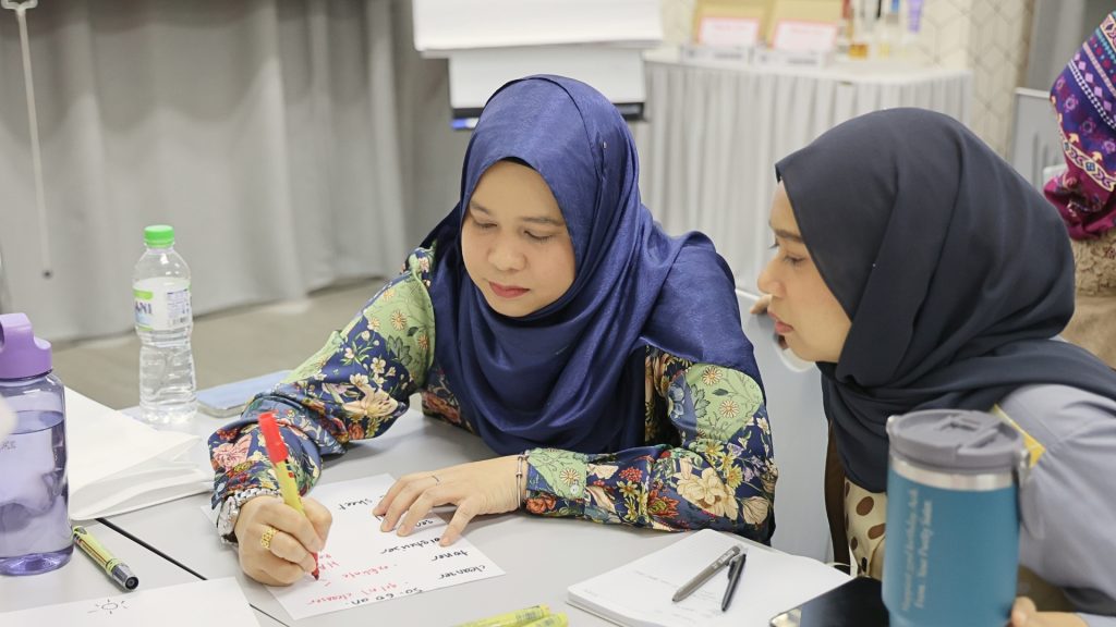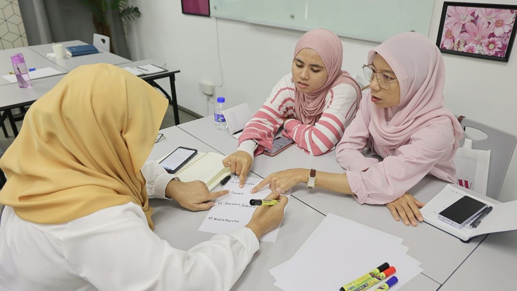 Aktiviti seterusnya cukup interaktif. Ahli GPM diminta duduk mengikut kumpulan, dan setiap kumpulan ditugaskan dengan kategori umur yang berbeza. Mereka perlu menyenaraikan rutin dan bahan bagi setiap kategori umur.