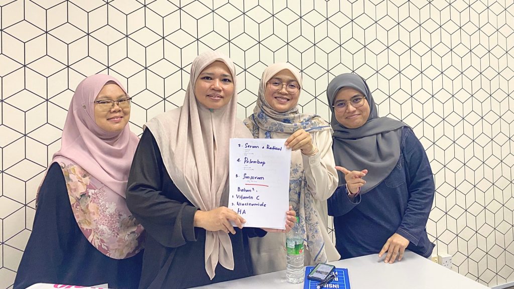 Setelah sesi ini, ramai peserta menyedari bahawa masalah kulit mereka sebenarnya berkait rapat dengan bahan yang mereka gunakan.