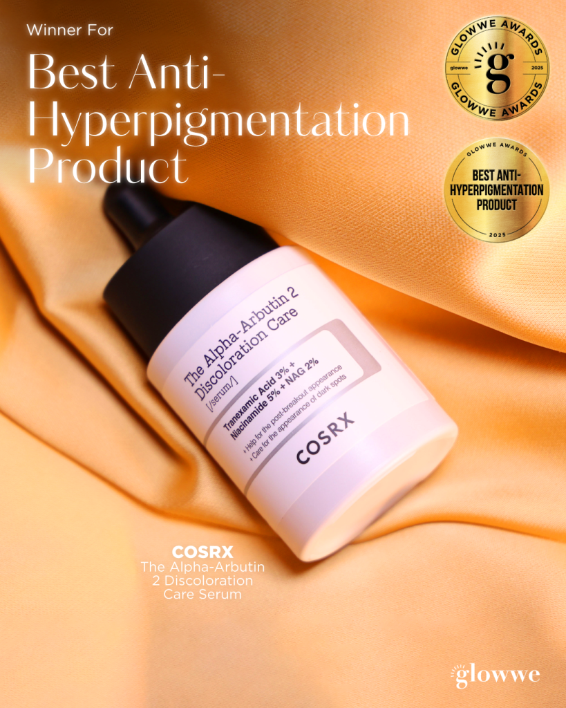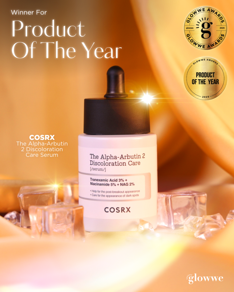 Tahniah kepada COSRX The Alpha-Arbutin 2 Discoloration Care Serum yang memenangkan Glowwe Awards 2025 untuk kategori Product of the Year.
